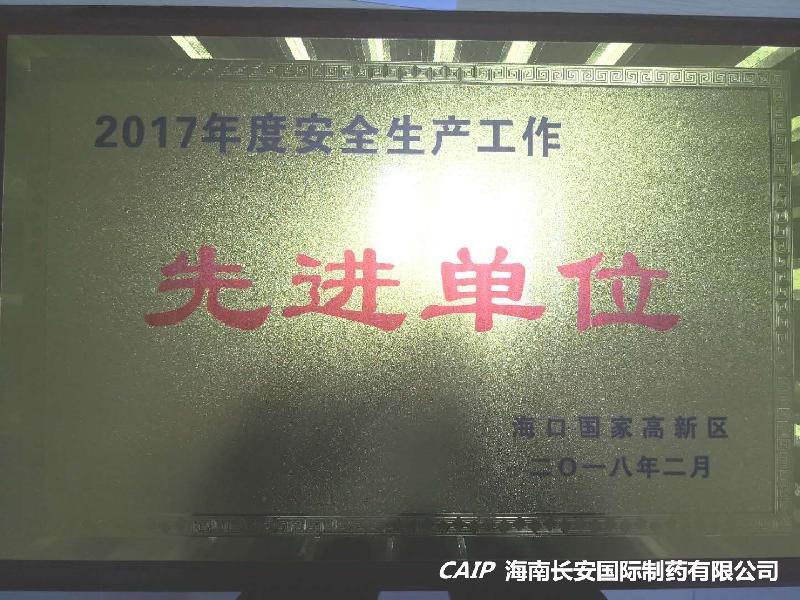 祝賀海南長(zhǎng)安制藥榮獲“2017年度安全生產(chǎn)工作先進(jìn)單位”、“2017年度創(chuàng)新發(fā)展十強(qiáng)”榮譽(yù)稱號(hào)