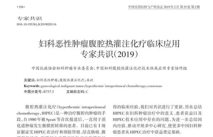2017年,中國(guó)婦科腫瘤專家遵循循證醫(yī)學(xué)原則,對(duì)應(yīng)用HIPEC治療婦科腫瘤的證據(jù)進(jìn)行了總結(jié),并以此為依據(jù)制定了我國(guó)首部《婦科腫瘤腹腔熱灌注治療臨床應(yīng)用專家共識(shí)》。2017年后,HIPEC技術(shù)的合理運(yùn)用和臨床經(jīng)驗(yàn)又獲得了更進(jìn)一步的進(jìn)展。